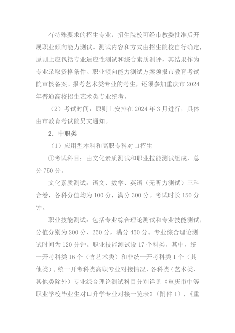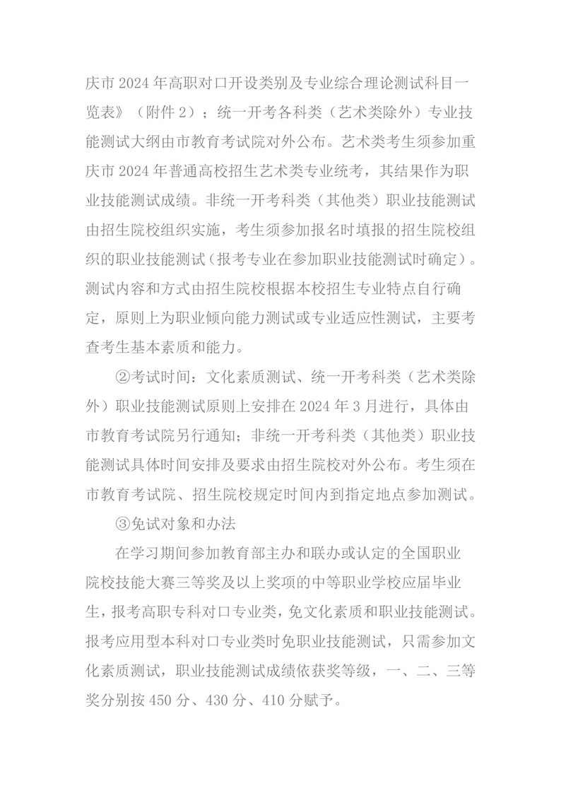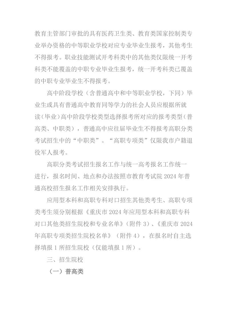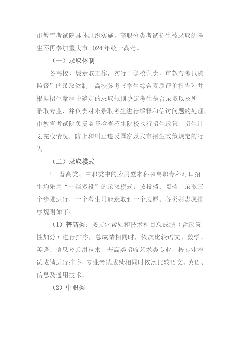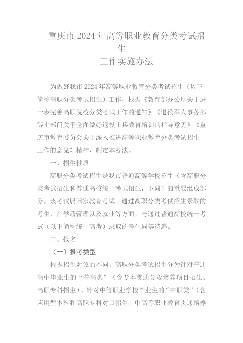 重庆市2024年高等职业教育分类考试招生工作实施办法
