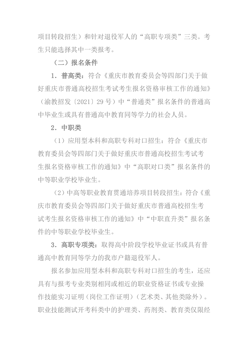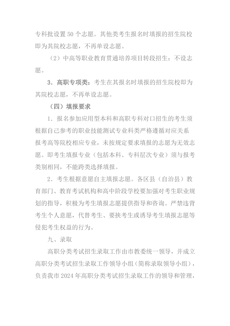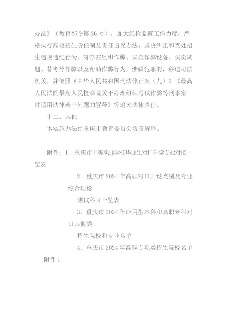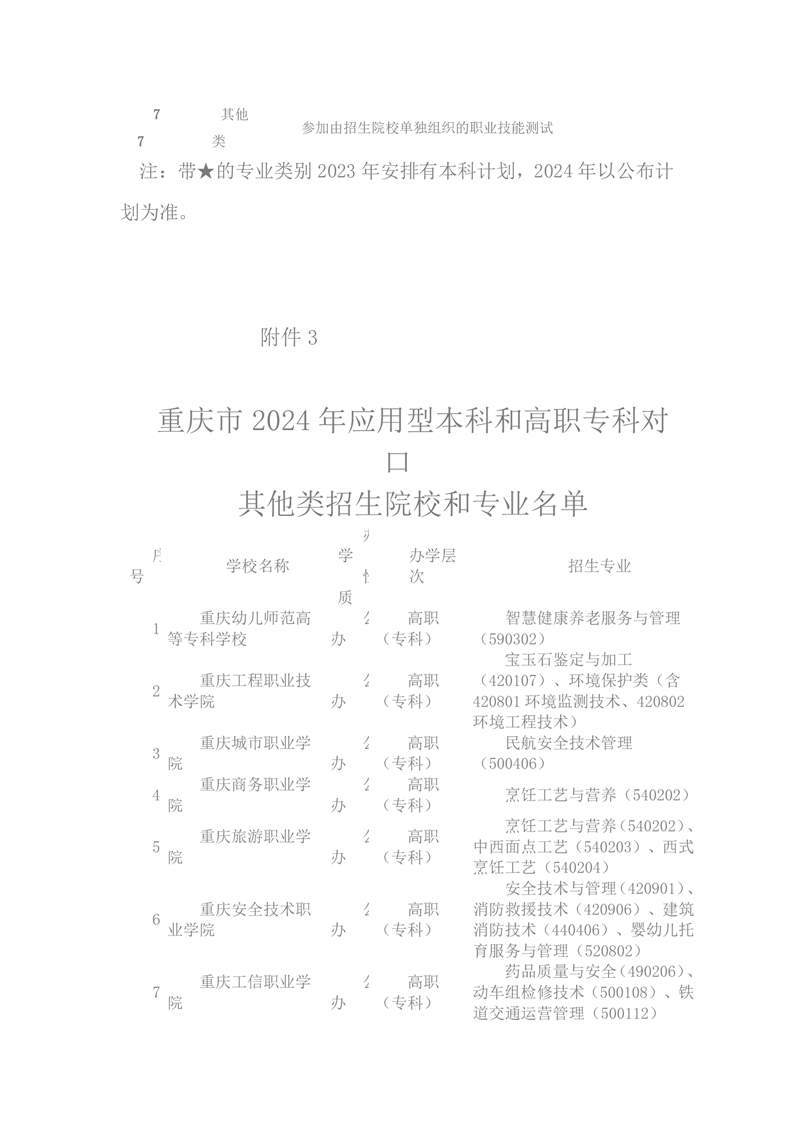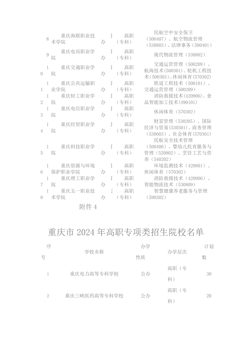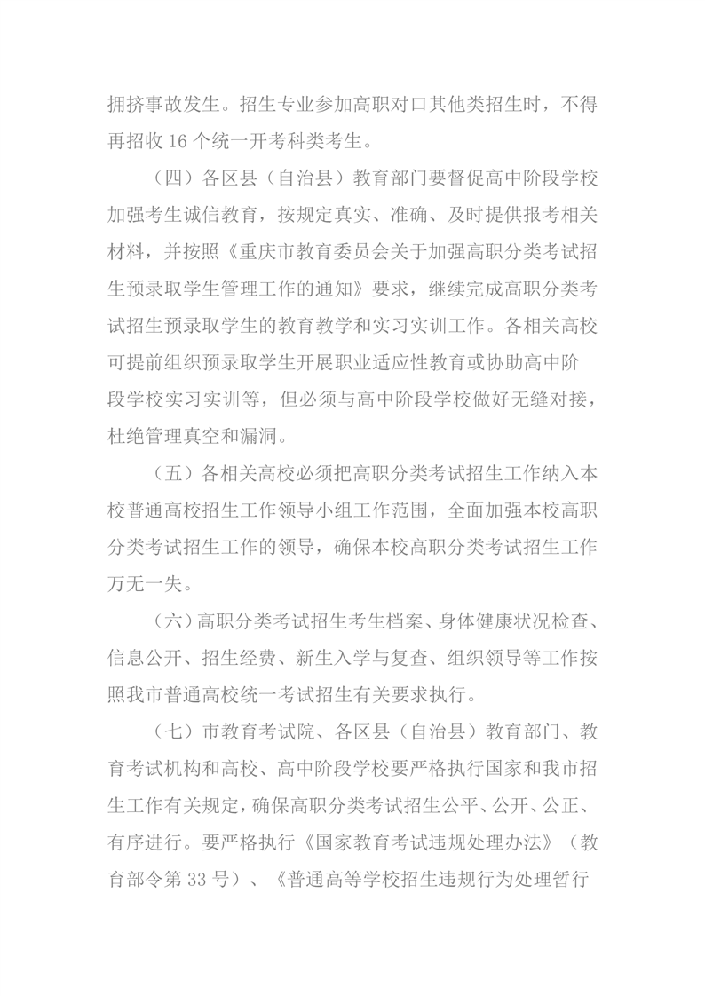 重庆市2024年高等职业教育分类考试招生工作实施办法