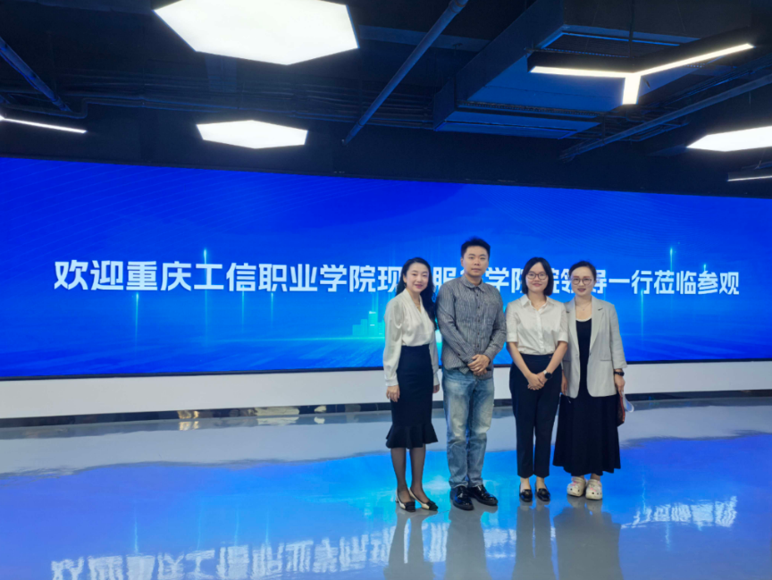 5月28日,重庆工信职业学院现代服务学院负责人肖建敏率数智电商教研室一行访问重庆博拉新媒体有限公司。双方围绕数字技术应用与人才培养展开深入交流并达成合作共识。在参观交流过程中,博拉新媒体公司详细介绍了其核心业务,涵盖数字营销、AI智慧视觉、数字人开发、智算平台搭建等领域,并重点展示了短视频运营与快手达人孵化等创新项目。肖建敏介绍了现代服务学院在数智电商专业的建设成果及产教融合发展规划,双方就可能