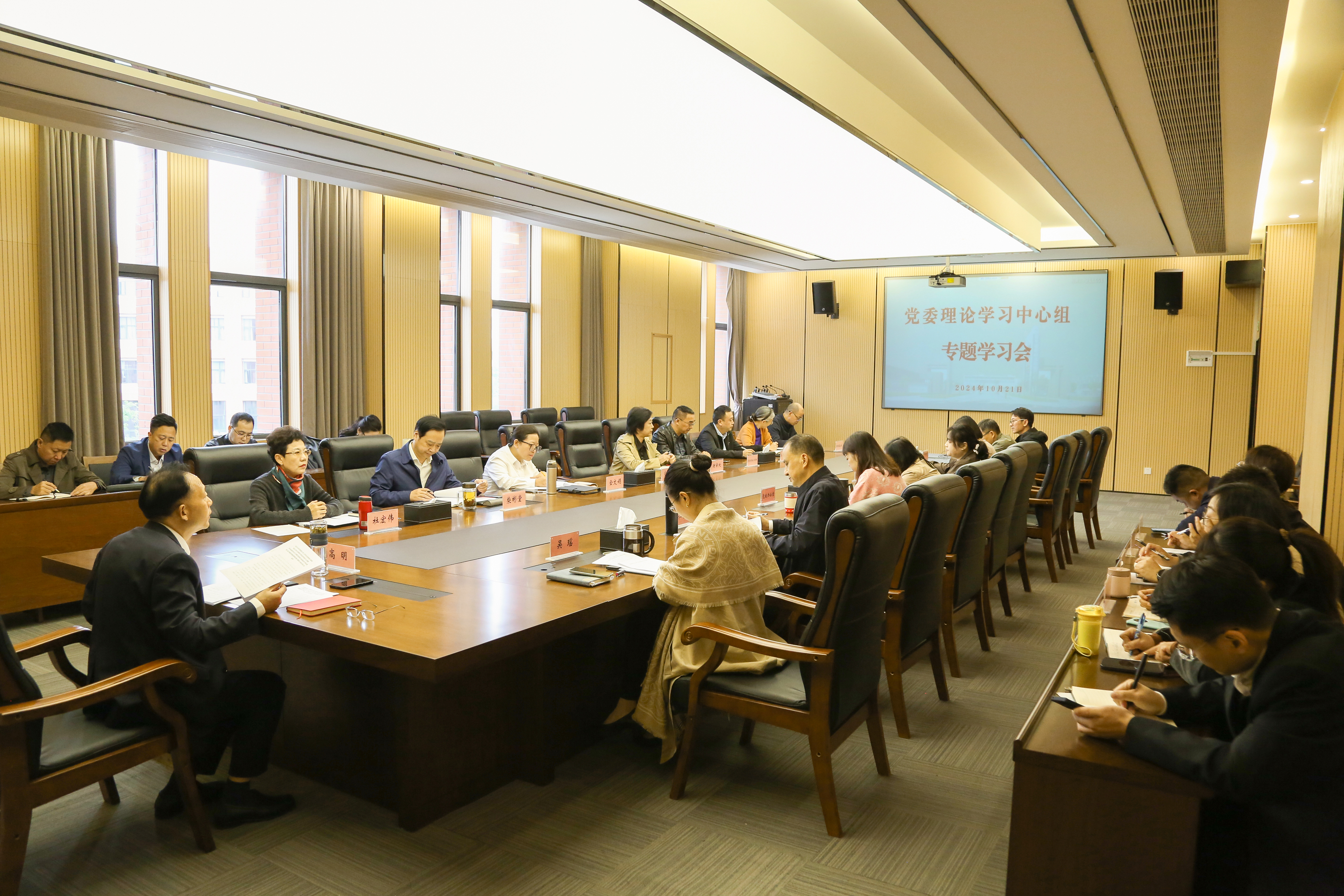 2024年10月21日下午,重庆工信职业学院党委理论学习中心组在立德楼1318会议室举行第九次专题学习会议,深入学习并研讨习近平文化思想。此次会议由党委书记高明主持,全体党委委员以及二级学院、部门负责人参加了集中学习。