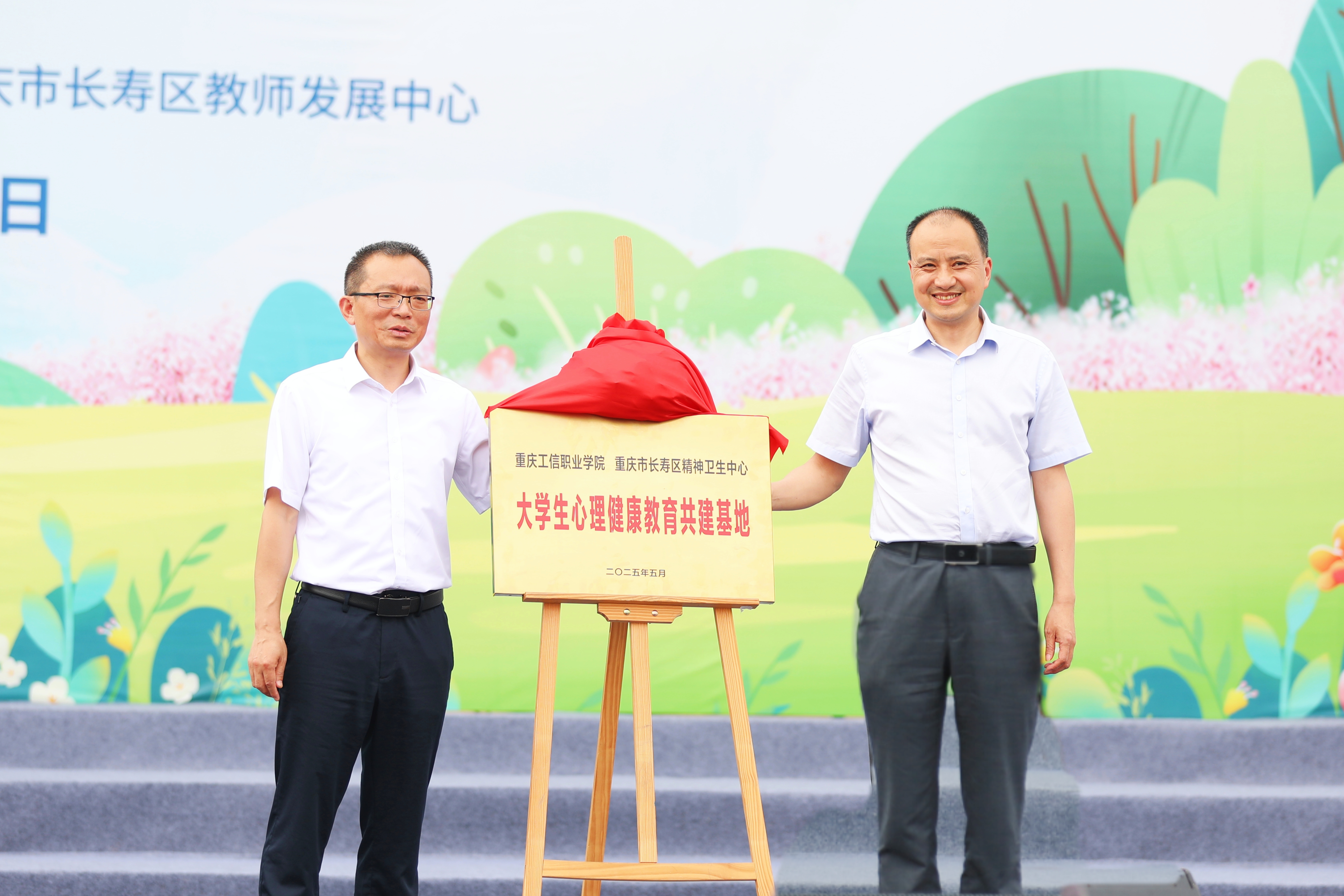 开幕式上,重庆工信职业学院与长寿区精神卫生中心正式签署合作协议,并揭牌成立“心理健康共建基地”。长寿区精神卫生中心党委副书记、院长文奎表示,此次合作将整合医疗专业资源与院校教育力量,为师生心理健康提供从科普宣传到危机干预的全方位支持。随后,学院与长寿葛兰中学长寿区新市街道初级中学长寿区新市街道中心小学校签署“大中小学心理健康共建单位”合作协议,标志着区域心理健康协同育人网络正式启动。