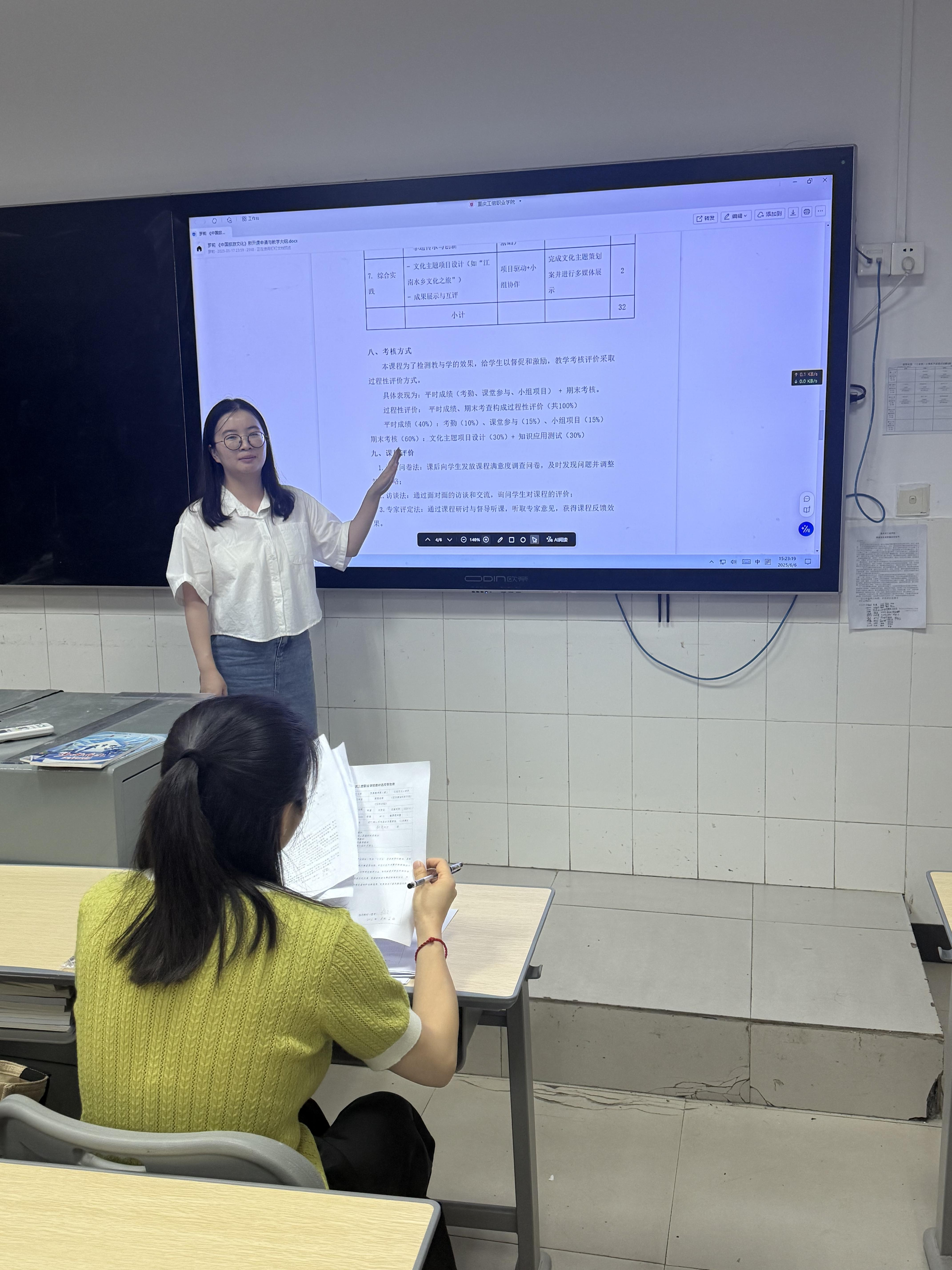 活动开始,罗莉老师分享了《中国旅游文化》课程评价设计思路。她从学生评价与教师评价两方面展开阐述,学生评价涵盖课堂表现、小组合作、课程作业等维度,采用自评、互评、师评相结合的方式,全面考量学生学习过程与成果;教师评价则重点关注学生知识掌握程度、思维拓展能力以及对旅游文化的理解与感悟。随后,艺术组其余老师结合自身教学经验,积极提出相关评价方式。有的老师提出可以引入项目式学习成果评价,以实际项目成果检验学生学习效果;还有老师建议增加过程性评价比重,通过学习日志、课堂问答等方式记录学生进步,评价更加客观、全面。