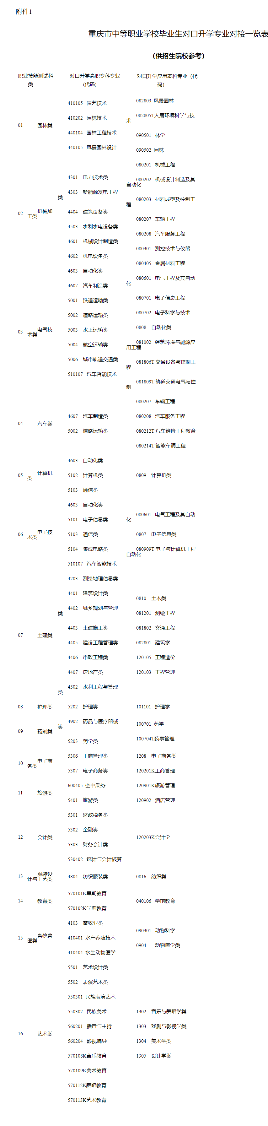 附件:1.重庆市中等职业学校毕业生对口升学专业对接一览表