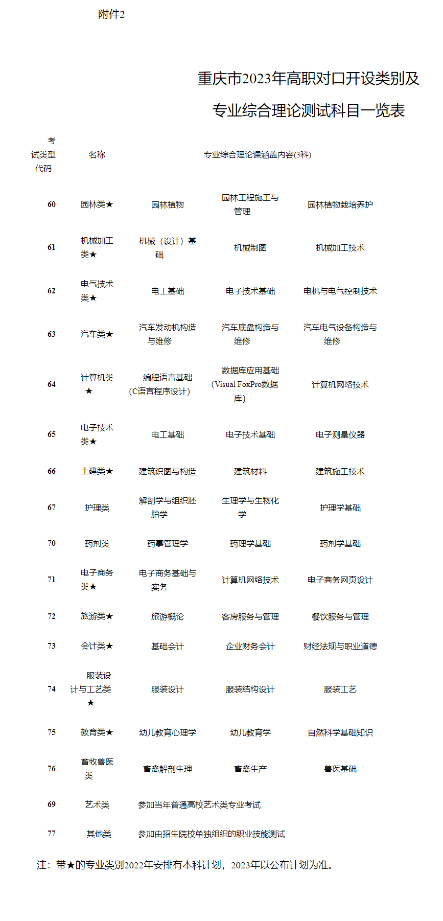 2.重庆市2023年高职对口开设类别及专业综合理论