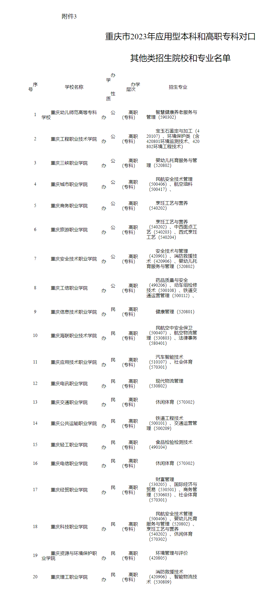 3.重庆市2023年应用型本科和高职专科对口其他类