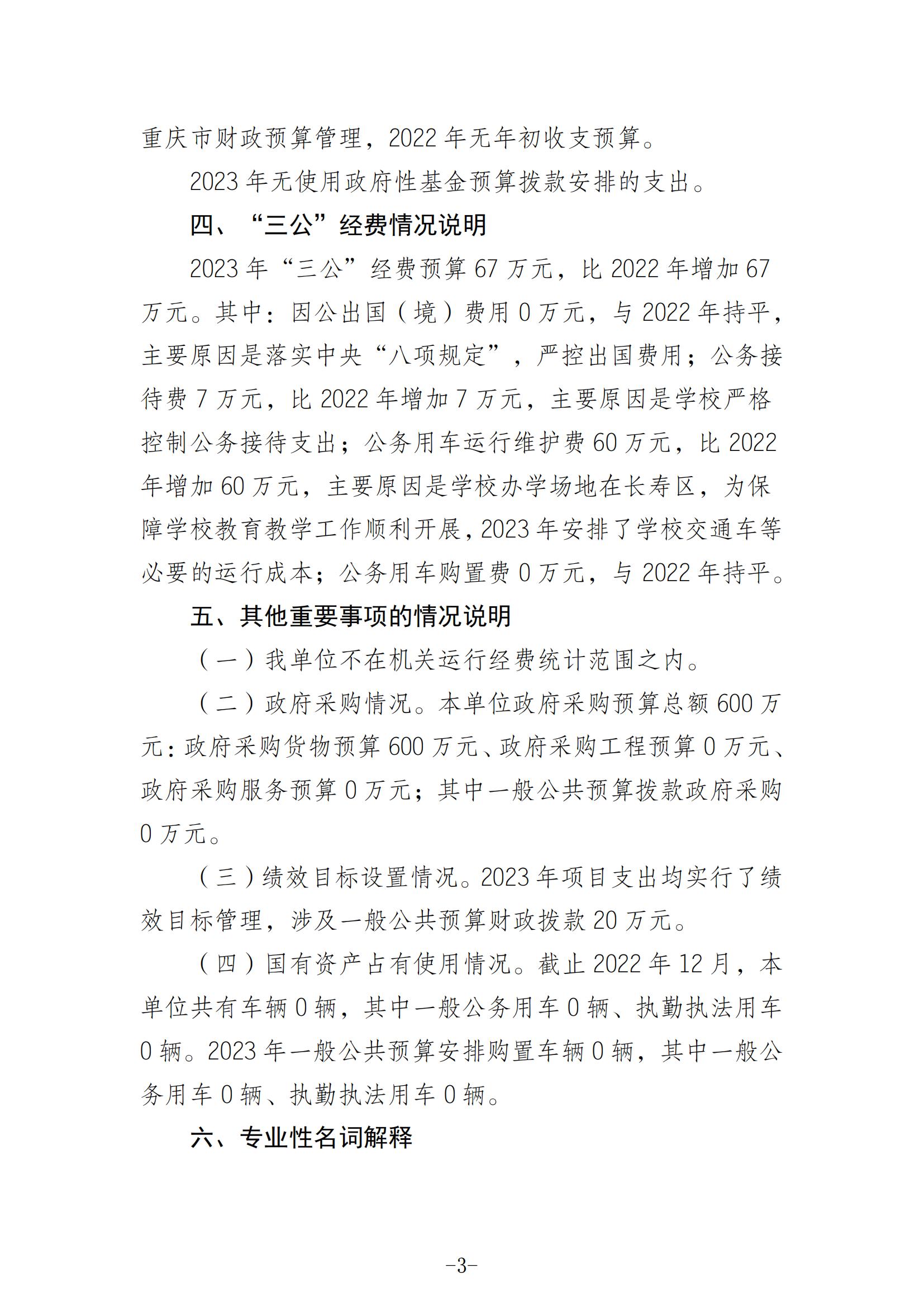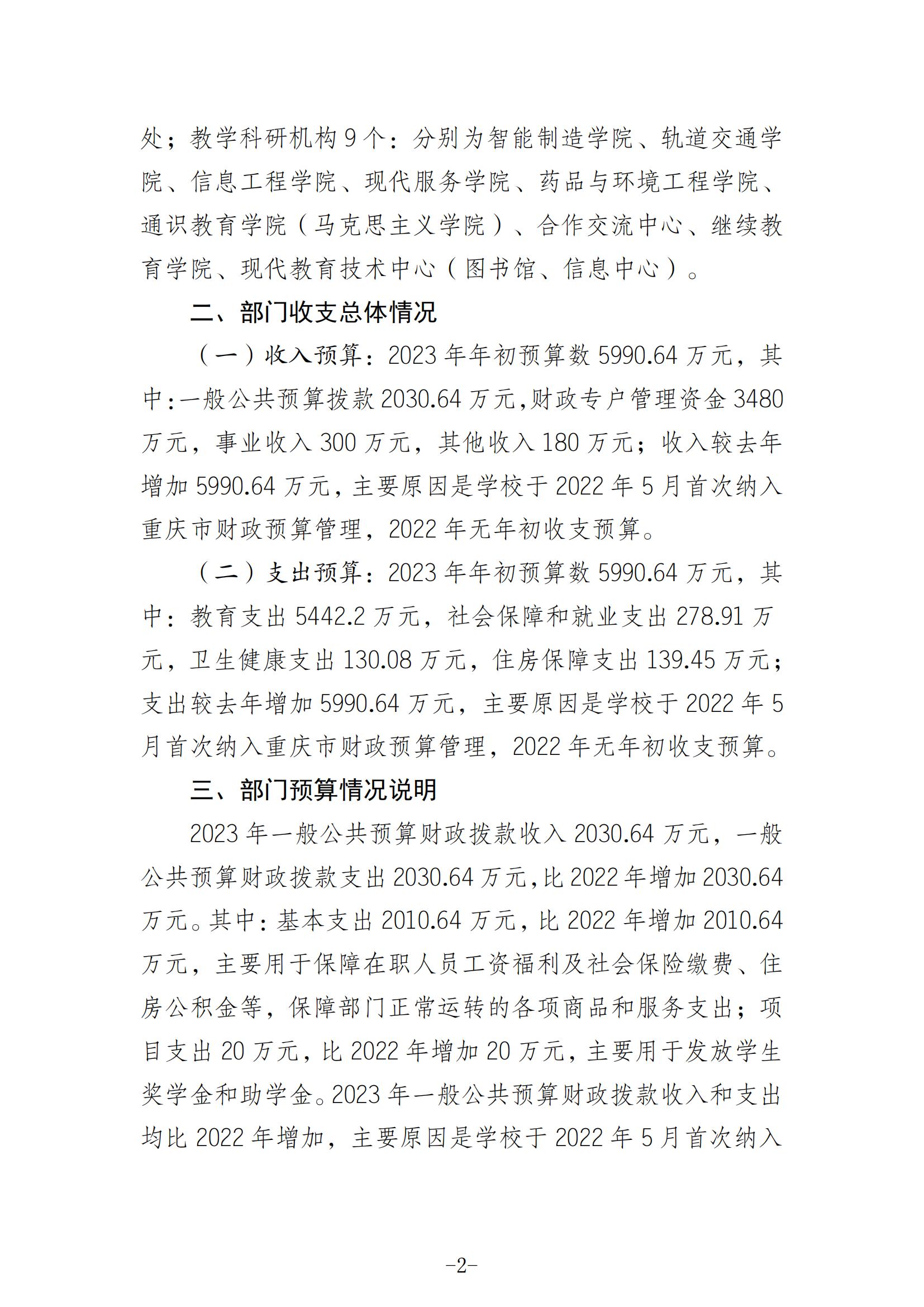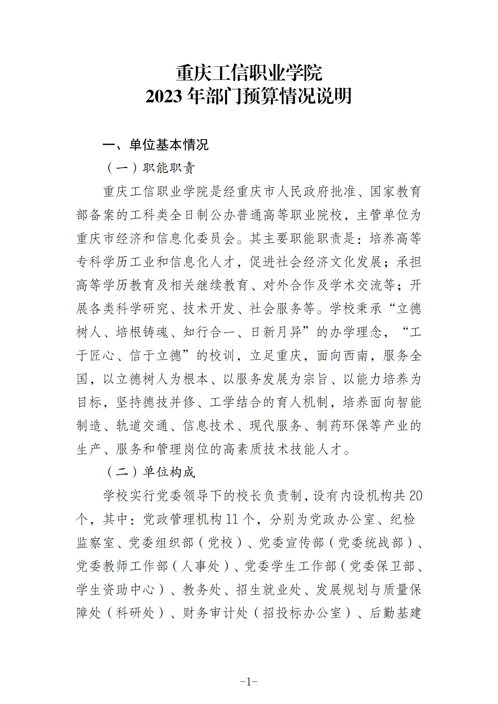 重庆工信职业学院 2023 年部门预算情况说明