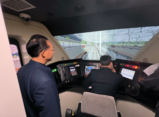 4月7日上午,刘雪梅处长、高明书记一行来到中国铁路成都局集团公司党校(职工培训基地),实地参观了HXD1大功率电力机车仿真驾驶、CRH1动车仿真驾驶、CTC调度、高铁车站仿真作业等实训室,详细询问了解了实训基地建设情况。