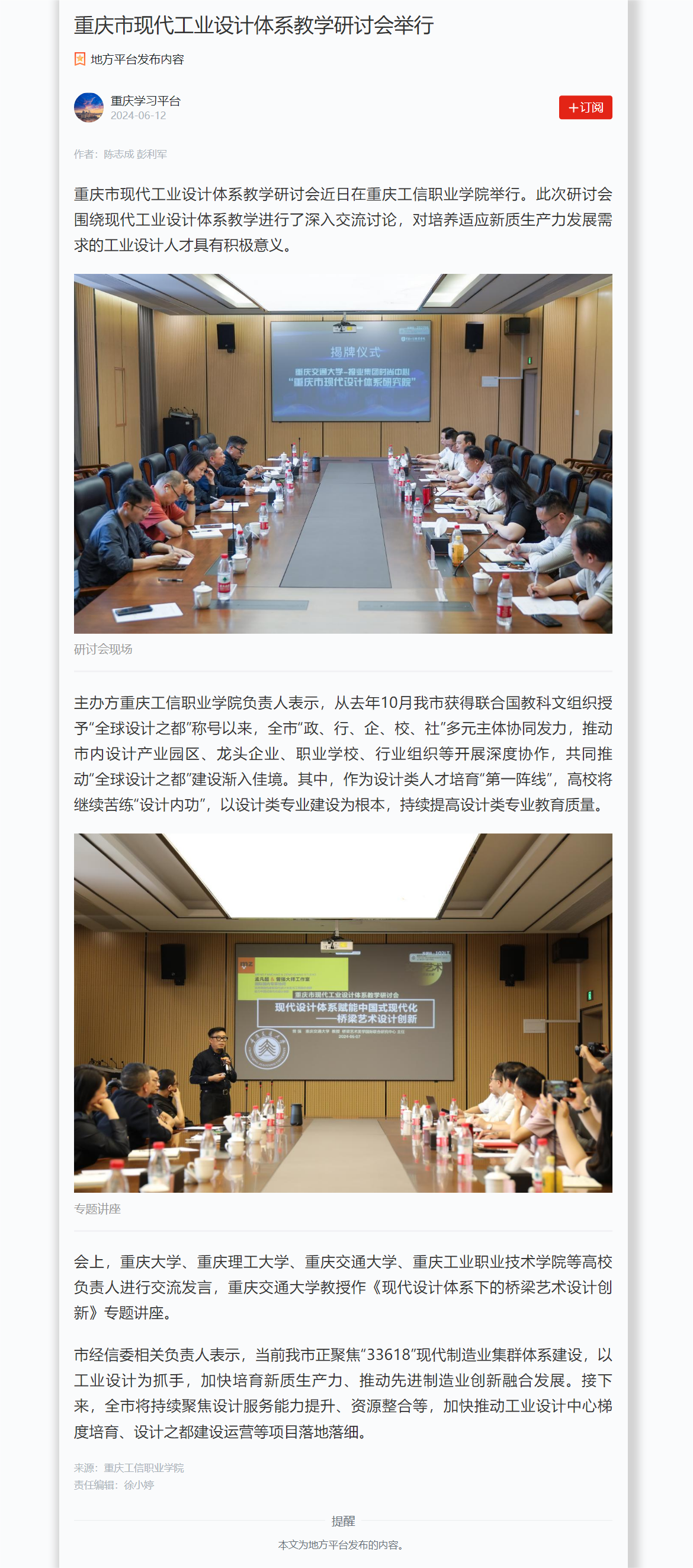 【重庆学习平台】重庆市现代工业设计体系教学研讨会举行