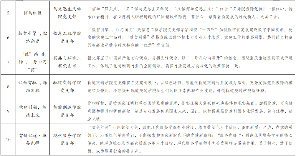 根据《关于校党委及基层党组织党建品牌征集活动的通知》要求,经各支部推荐、学校评审,现将基层党组织党建品牌创建评审结果予以公布。