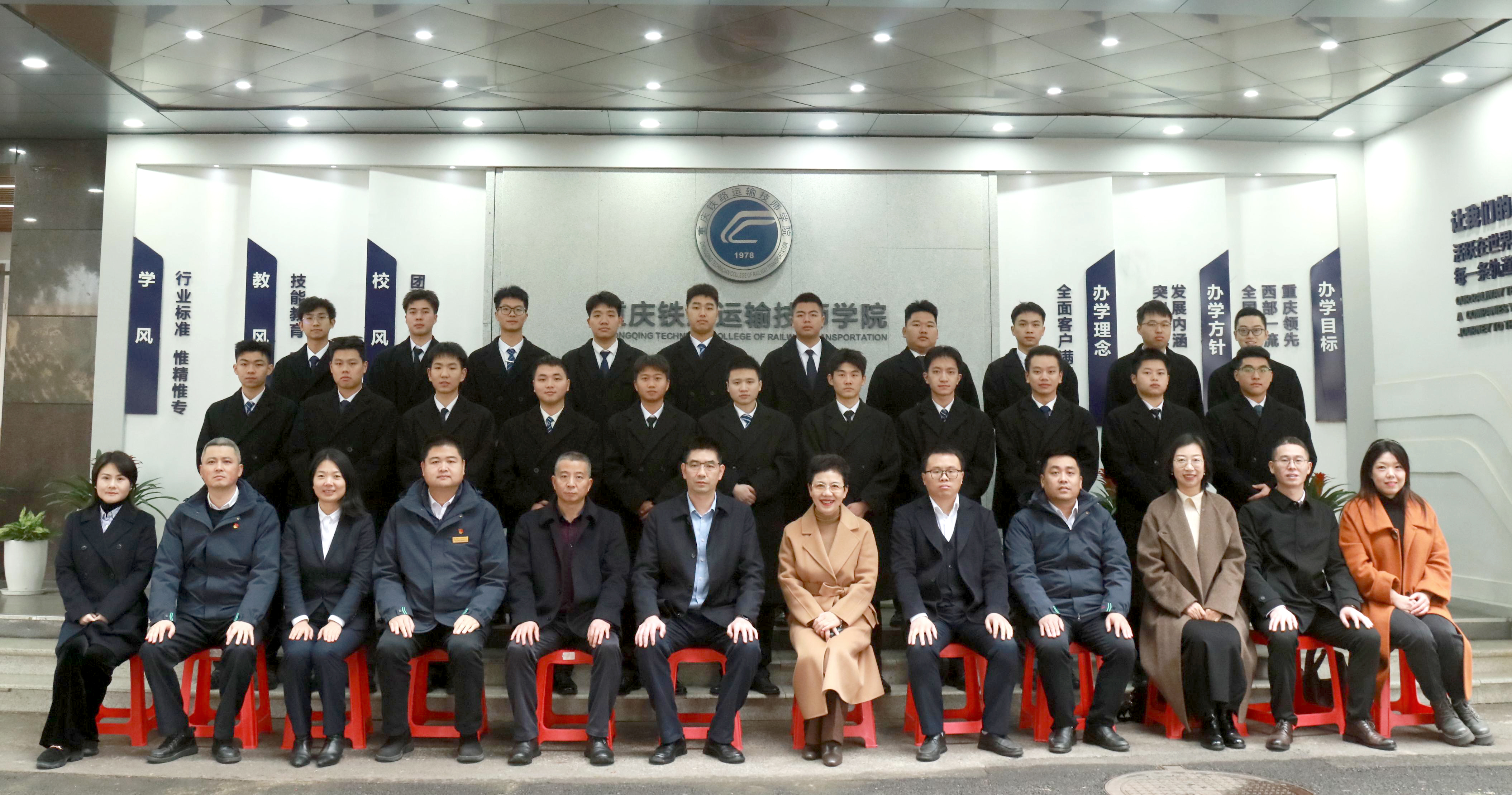 会前,重庆轨道十八号线建设运营有限公司领导一行参观了学校实训基地。在校企双方召开座谈交流会上,双方领导就订单班教学、人才培养成果、校企协同机制等进行了深入交流。
