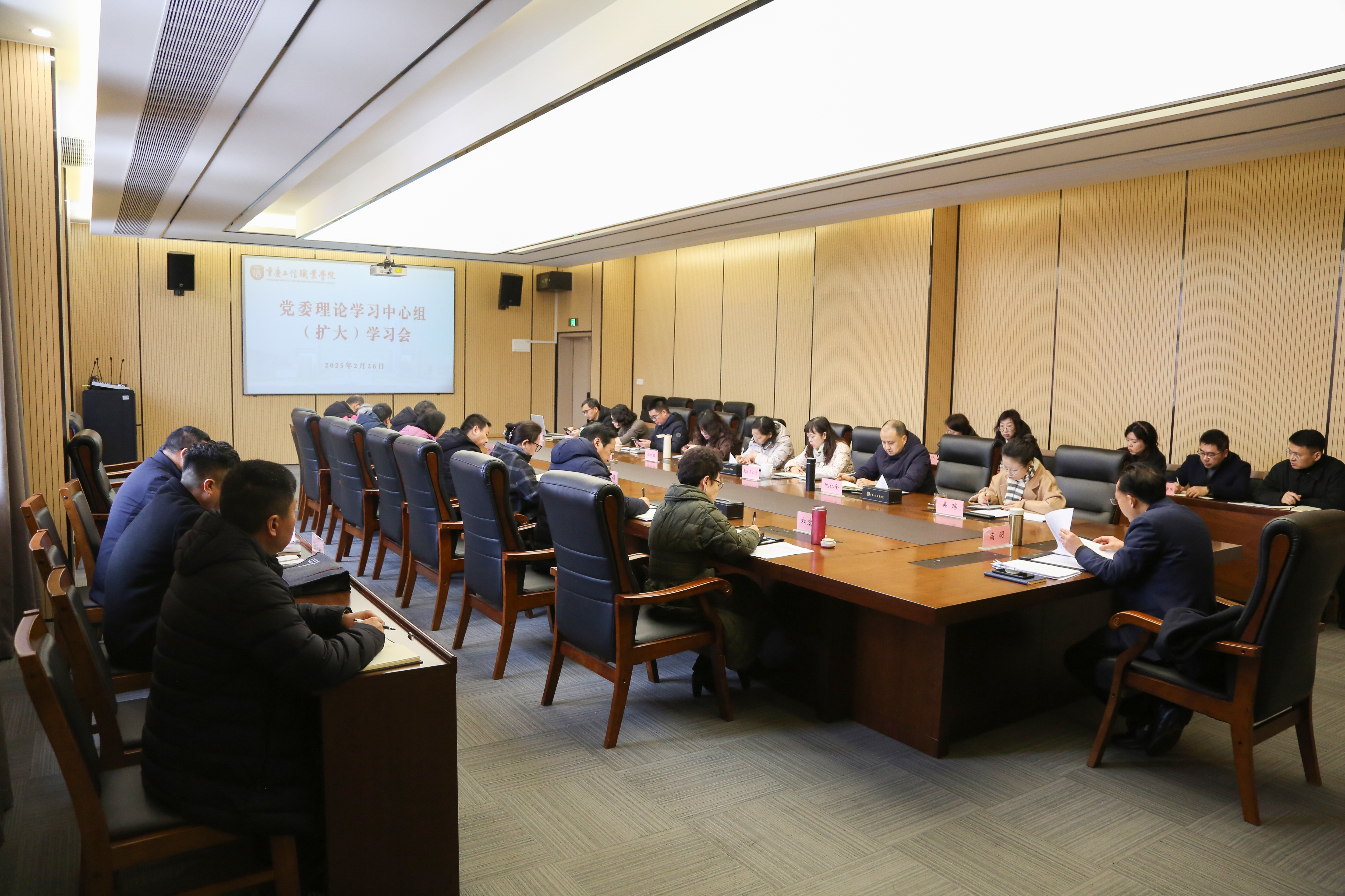 2月26日,重庆工信职业学院召开党委理论学习中心组(扩大)会议,党委书记高明主持,学院领导班子与中层干部参会,专题学习贯彻近期重要会议精神,安排新学期有关工作。