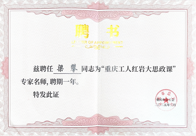 【喜报】我校梁攀老师受聘为“重庆工人红岩大思政课”专家名师