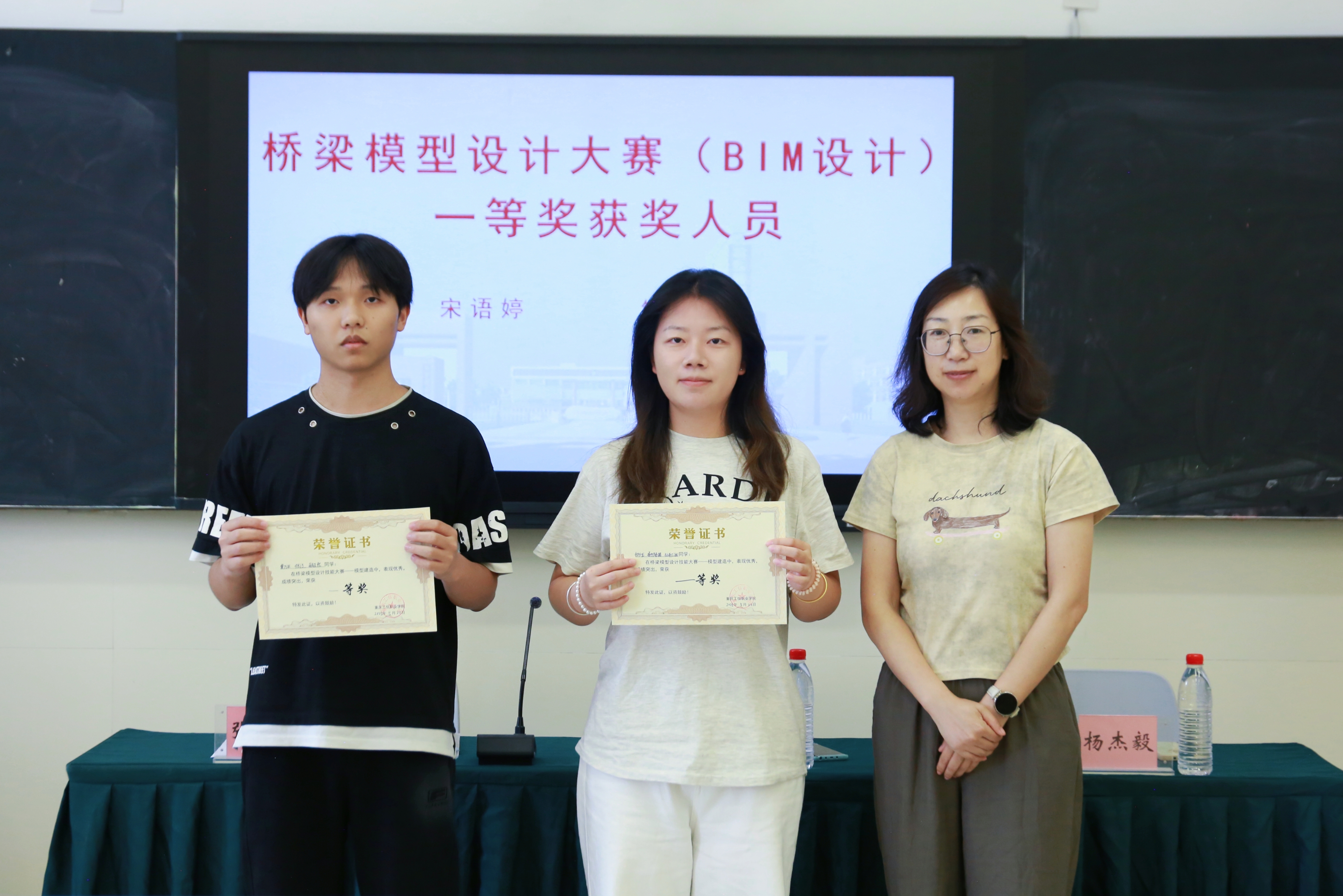 高速铁路维修技术大赛设有 BIM 软件设计与桥梁模型制造两个赛项,分别以个人和小组为单位参赛。参赛选手们充分发挥主观能动性,巧妙利用纸板、牙签、木棒等生活旧物,精心构建桥梁模型,这些模型设计巧妙、结构合理且造型美观,充分彰显了高速铁路桥梁等元素,以及轨道交通学院深厚的人文精神与鲜明的专业特色,深刻体现了学生们对专业知识的精准把握和创新思维的灵活运用。
