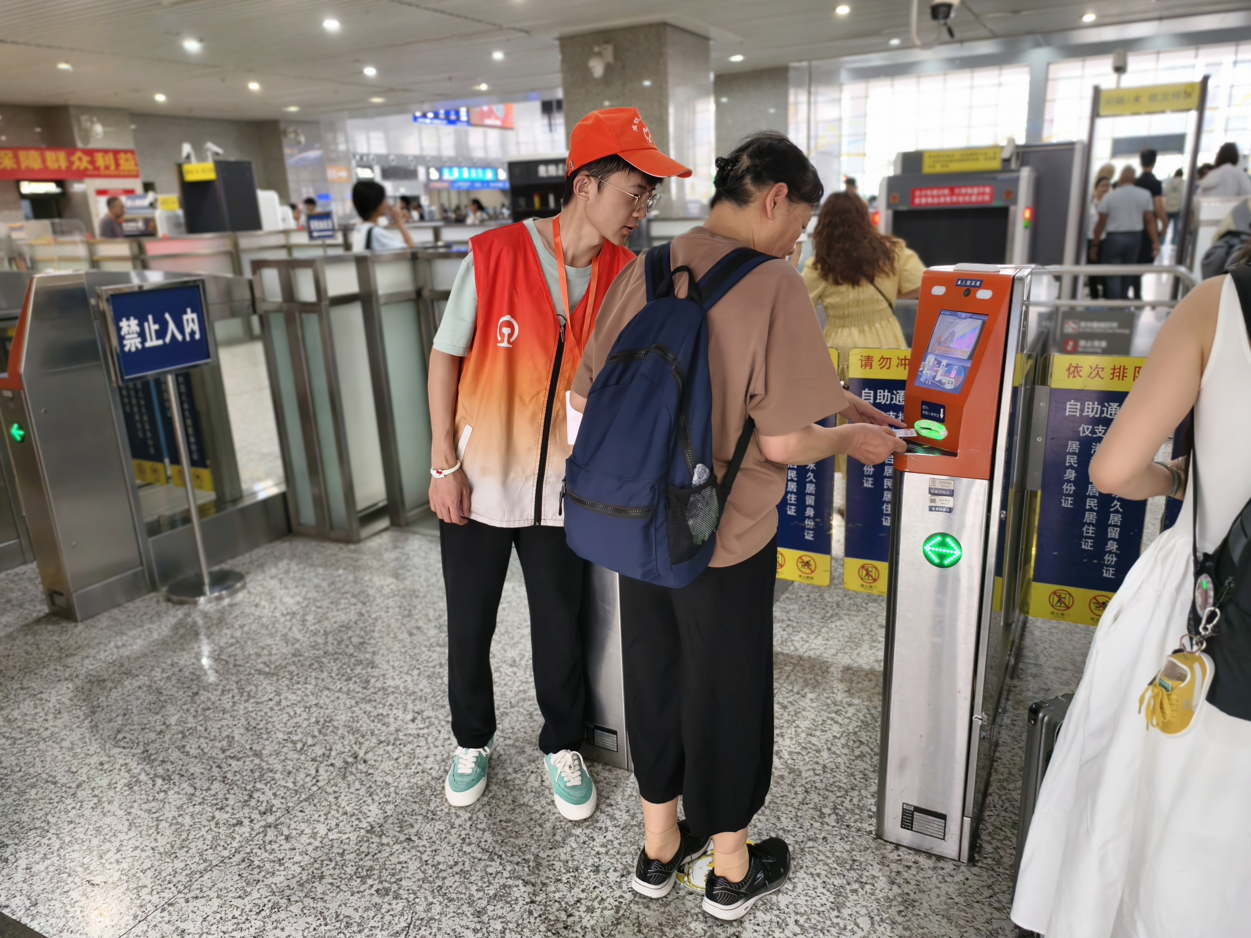 端午假期期间,“小橙子”团队正式开启“橙色守护”模式。在人潮涌动的车站里,总能看到那一抹抹橙色身影忙碌穿梭。面对行动受阻的老年人及残疾人,他们给予无微不至的帮扶,使其得以顺畅地进出车站;对聋哑旅客,更是关怀备至,关注他们直到成功上车为止才放心;在自助售票机前,他们化身答疑人,用耐心解答旅客购票时所产生的问题;而在候车大厅,他们则化身为向导,为旅客指明进出口、卫生间的方位,让车站变得不再庞大与陌生。小橙子们用耐心投入志愿服务之中,为端午节的火车站注入了浓浓的暖意,营造出一片祥和之景。