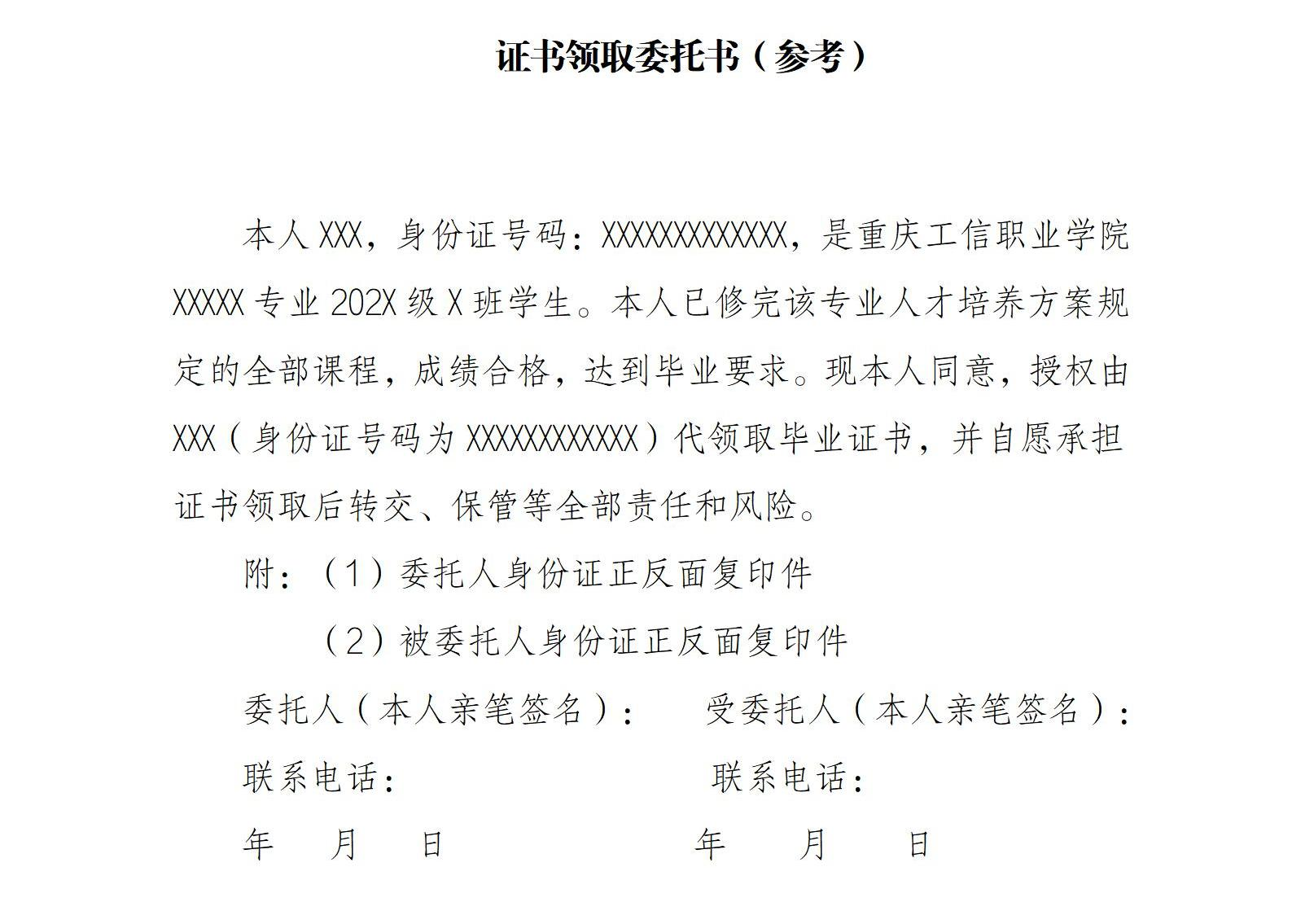 (1)学历证书须由学生本人持身份证签字领取,原则上不得代领。特殊原因学生本人不能到校领取时,须签署代领学历证书的委托书,由代领人持双方身份证明签领。