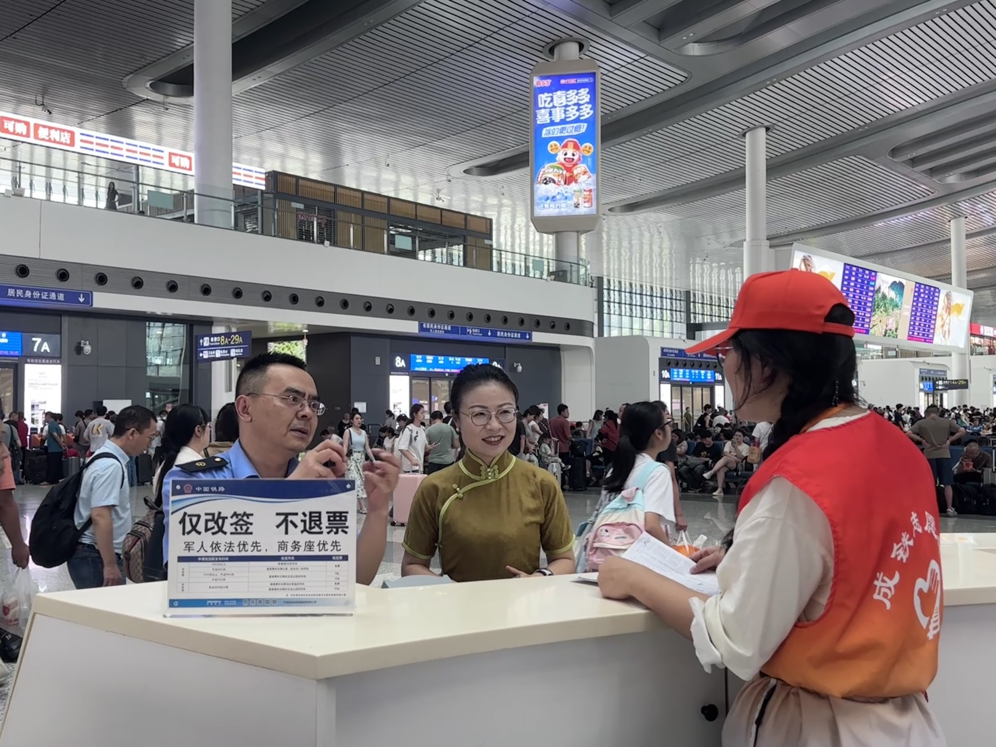 又值一年暑运至,热浪滚滚客流涌。在重庆西站与沙坪坝站这两大交通枢纽,一抹抹亮眼的“志愿橙”再次如约而至,成为守护旅客平安便捷出行的坚实力量。
