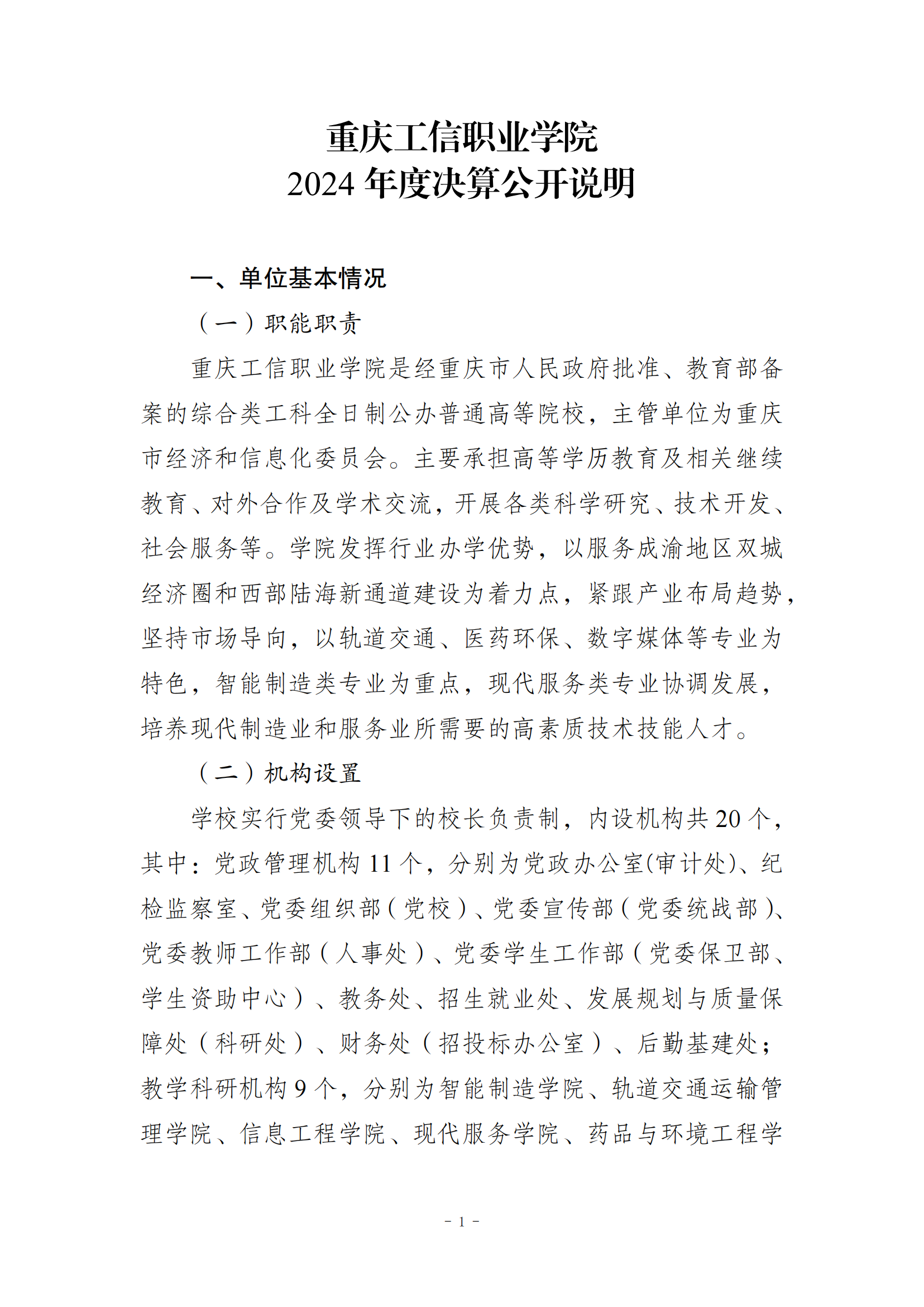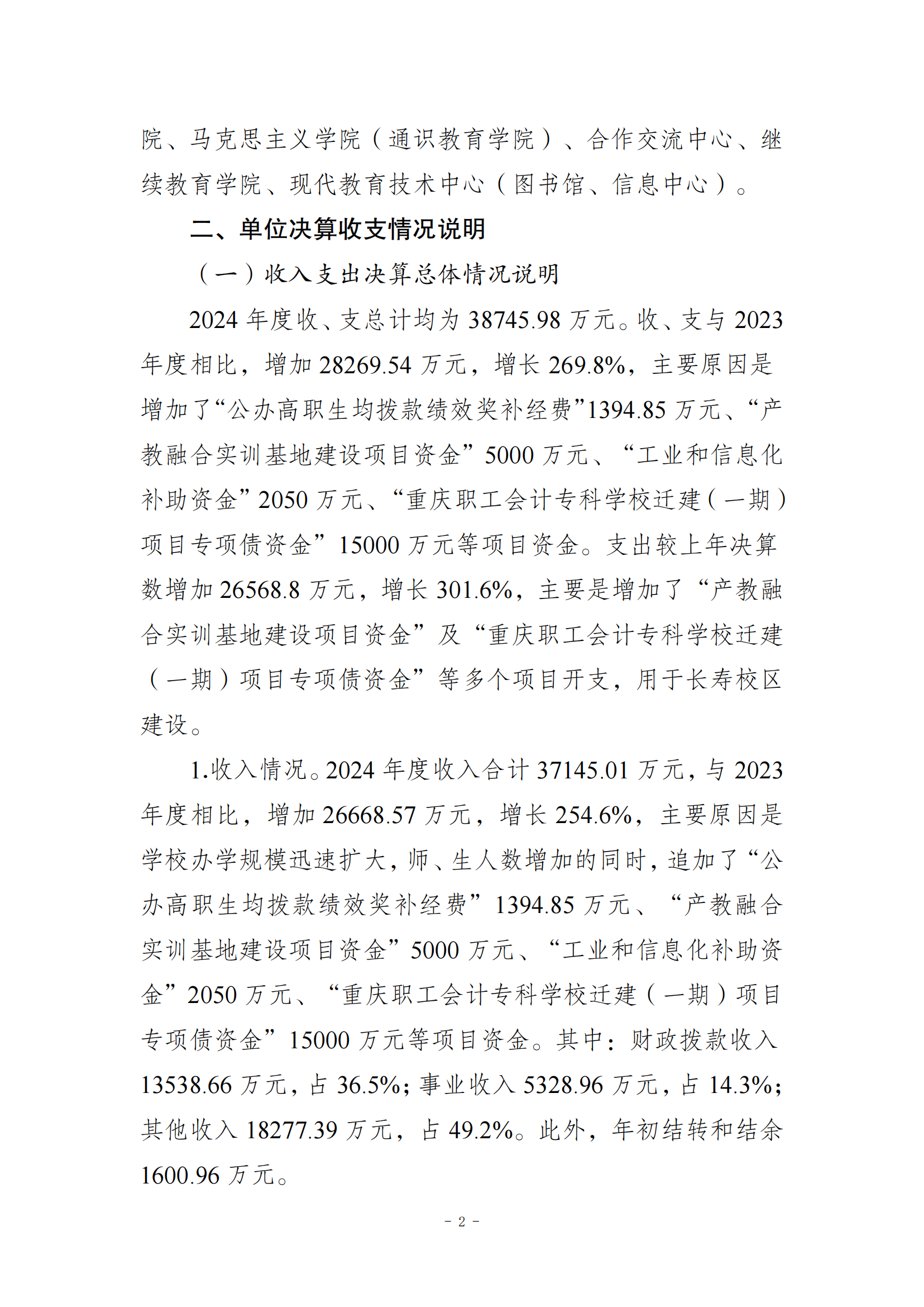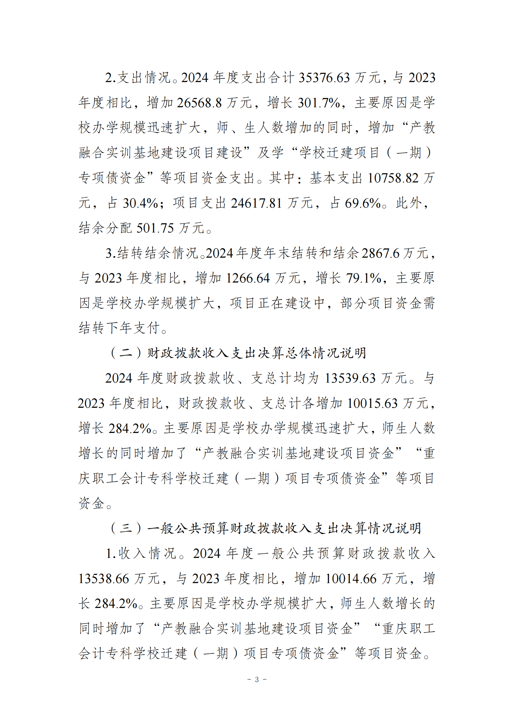 重庆工信职业学院2024年度决算公开说明