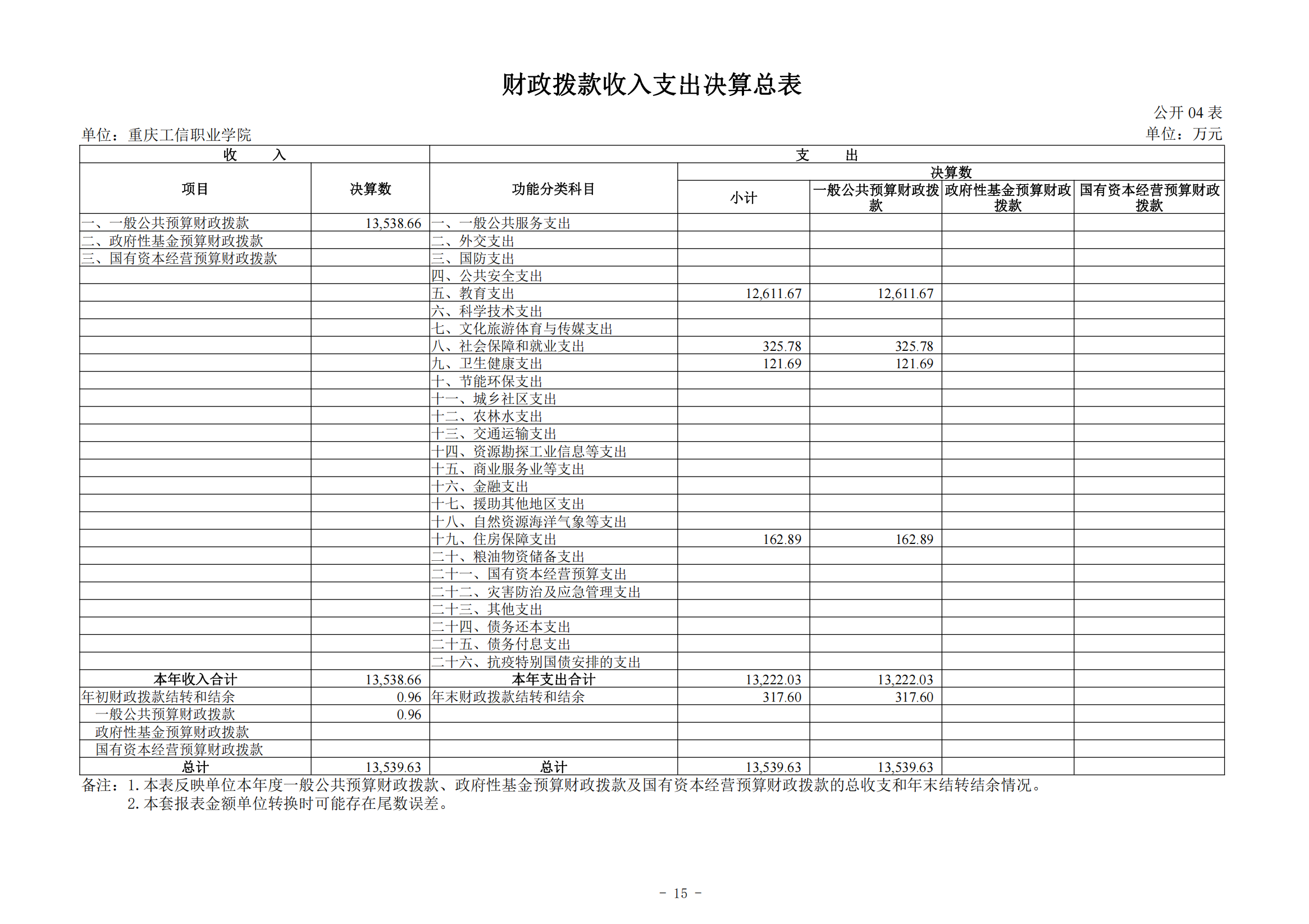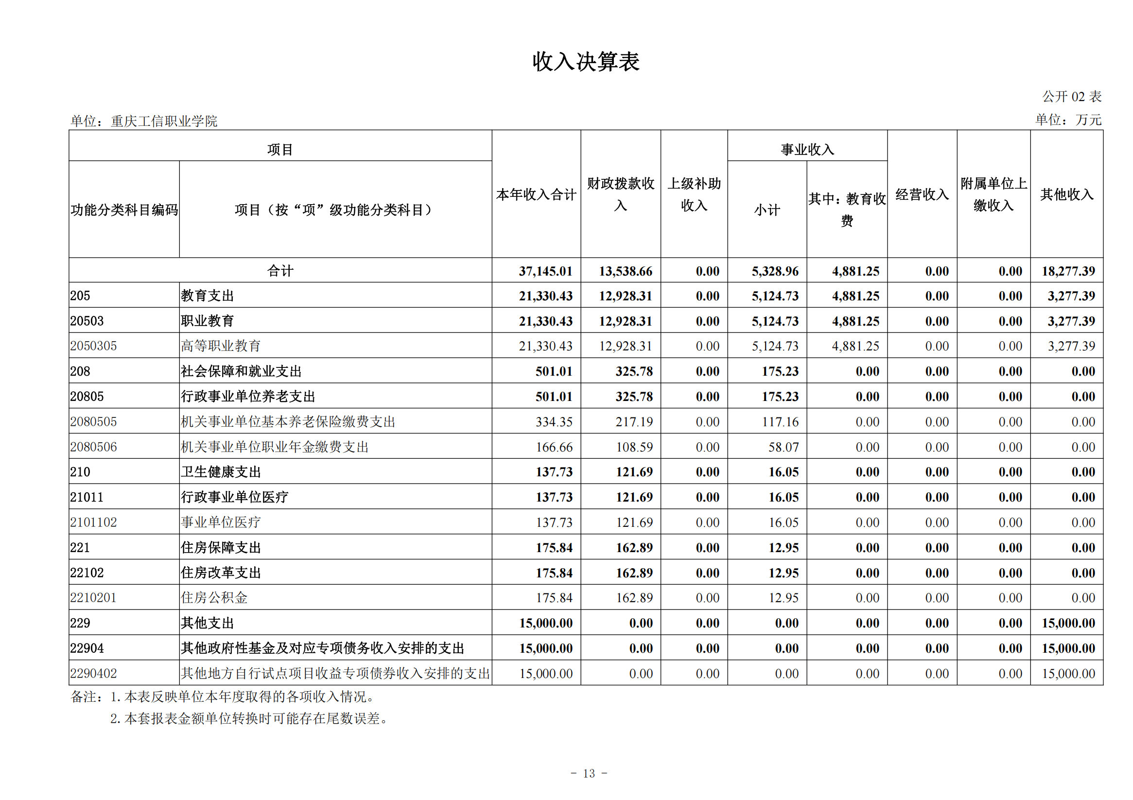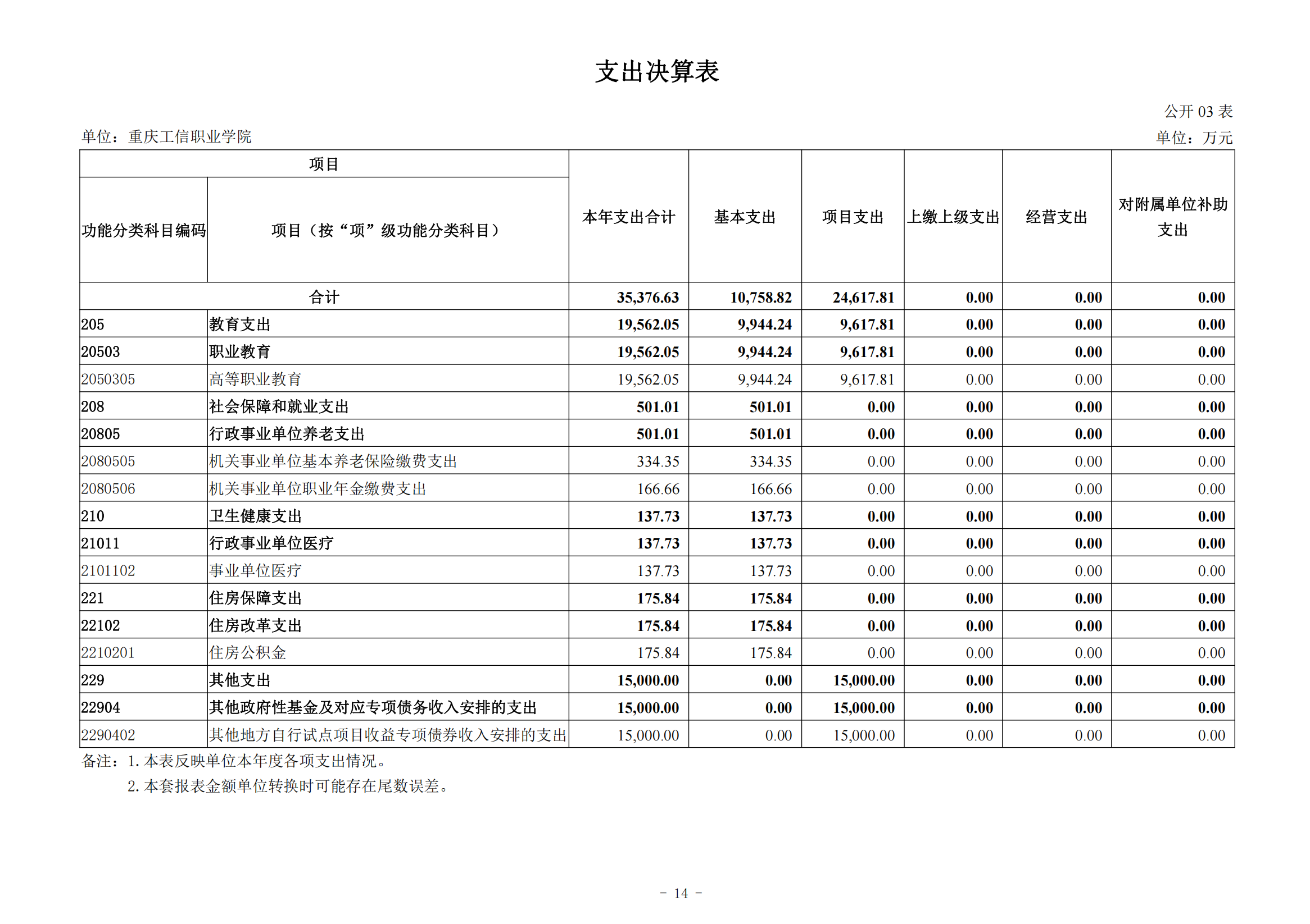 重庆工信职业学院2024年度决算公开说明