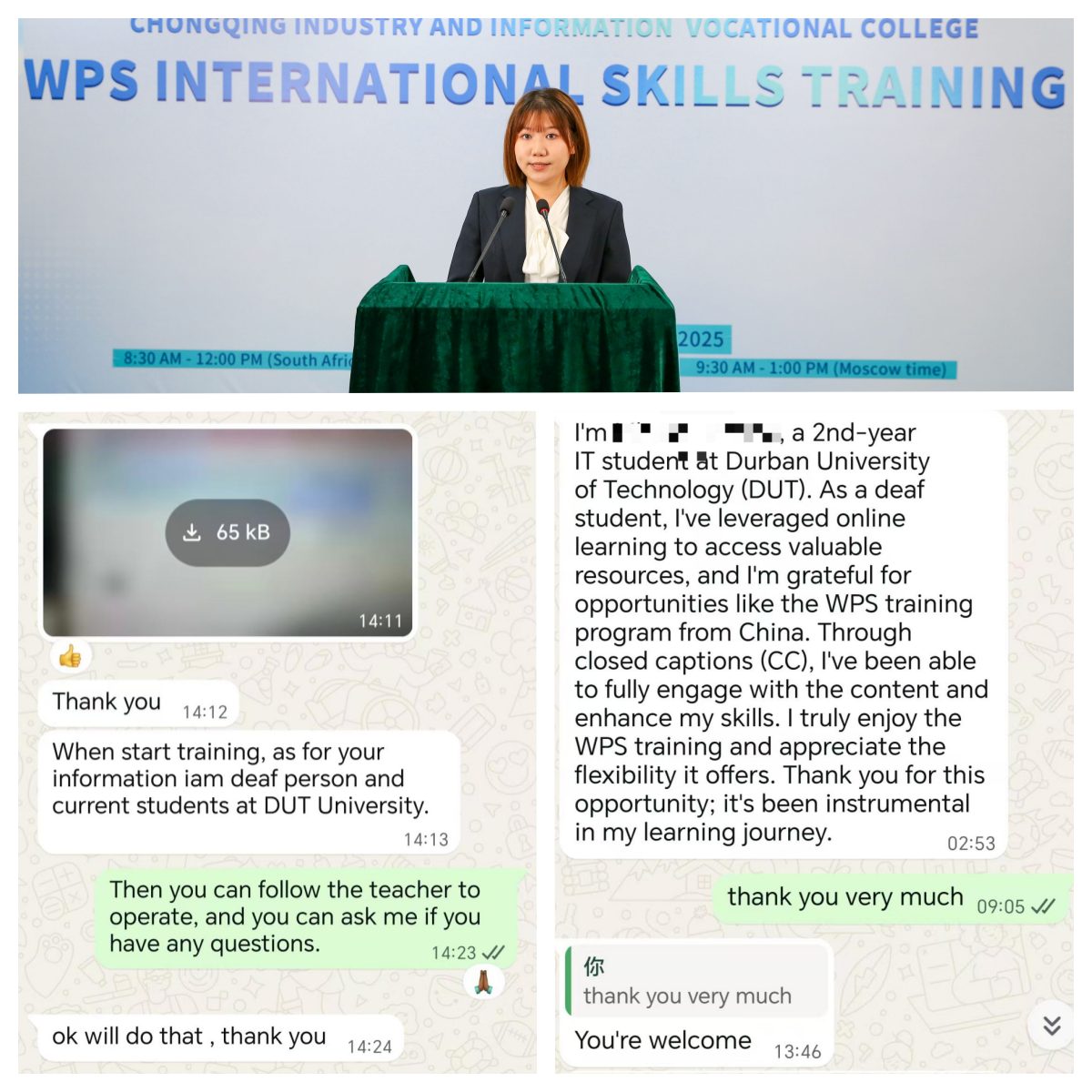 培训特别关注特殊群体学习需求。南非德班理工大学(DUT)听障学生Lebo(化名)通过聊天窗口留言:“I can finally follow every word in real time—this is true inclusion!”(我终于能实时跟上每一句话——这才是真正的包容!)