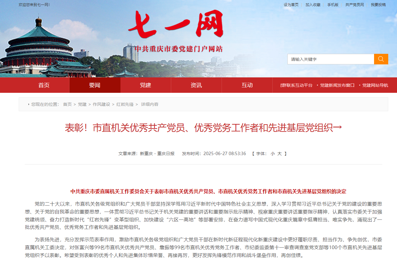 6月27日,中共重庆市委直属机关工委印发《关于表彰市直机关优秀共产党员、市直机关优秀党务工作者和市直机关先进基层党组织的决定》,重庆工信职业学院信息工程学院党支部被授予“市直机关先进基层党组织”荣誉称号。