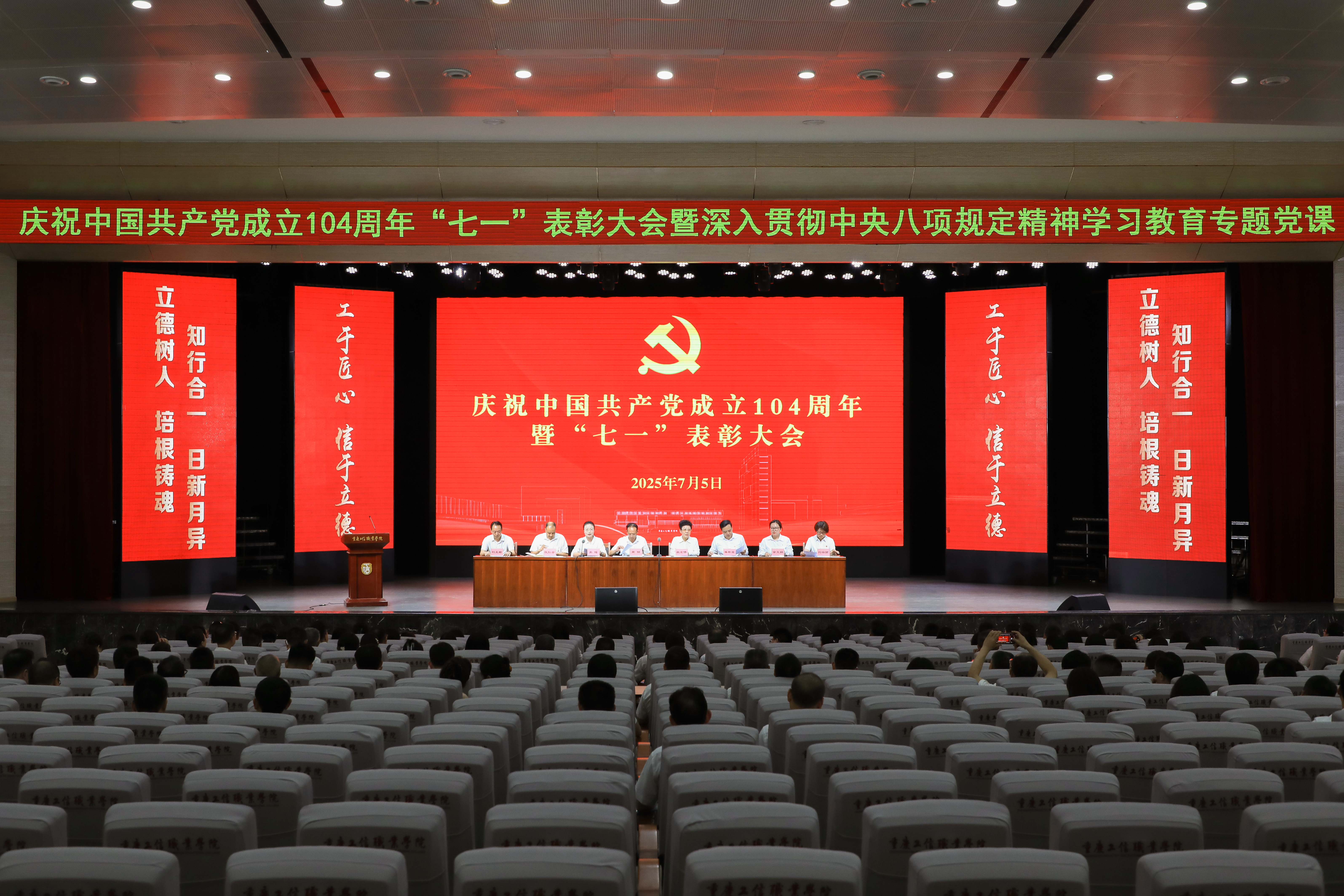 7月5日下午,重庆工信职业学院举行庆祝中国共产党成立104周年“七一”表彰大会。会议深入学习贯彻习近平新时代中国特色社会主义思想,扎实推进深入贯彻中央八项规定精神学习教育,通过表彰先进、交流经验、重温誓词等形式,激励学校各级党组织和党员干部接续奋斗、勇毅前行。学校党委书记高明讲授深入贯彻中央八项规定精神学习教育专题党课。党委副书记吴瑶主持会议。