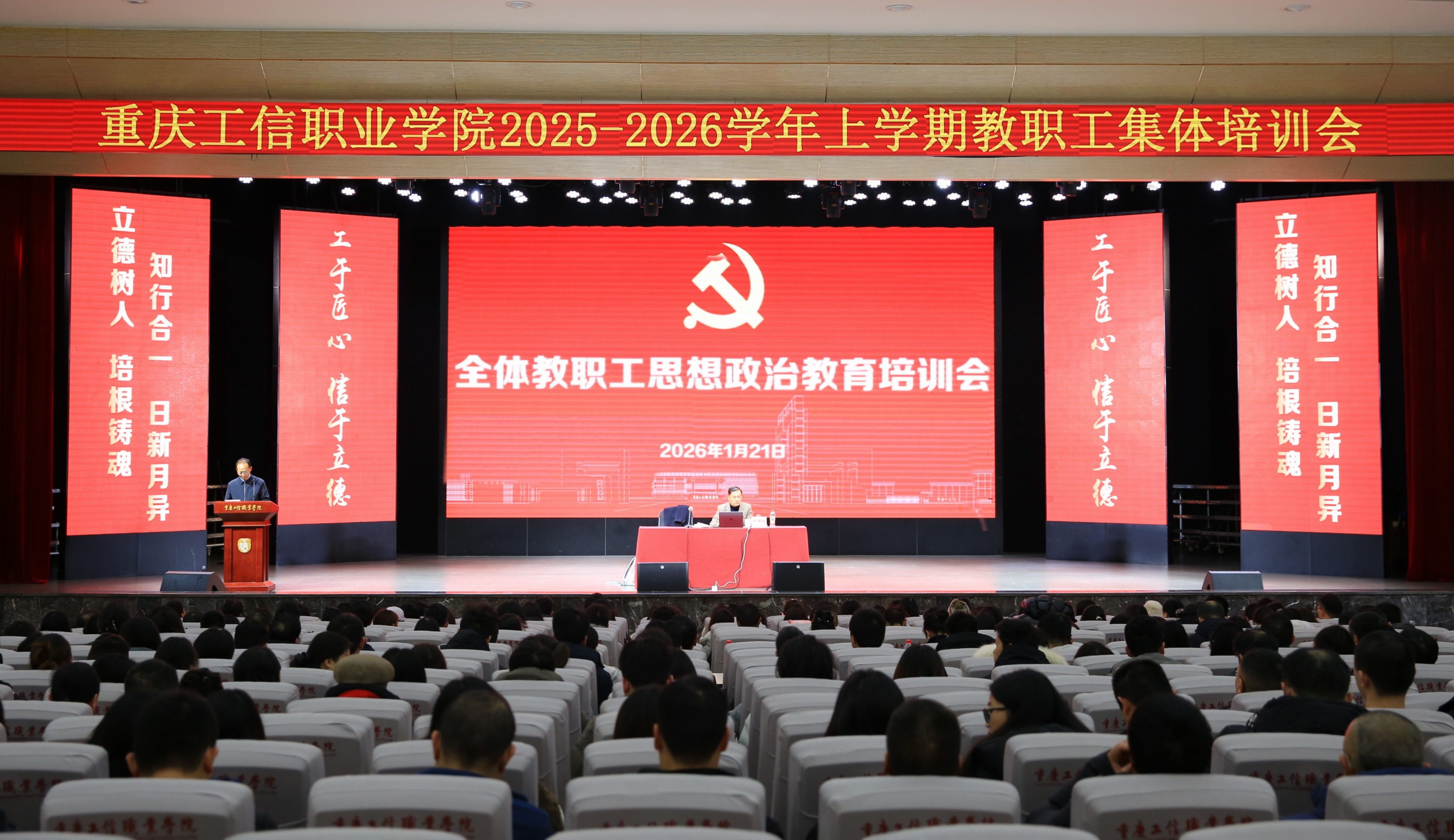 2026年1月21日,重庆工信职业学院召开2026年度第1次党委理论学习中心组专题学习会议,深入学习领会《党史学习教育工作条例》及中国共产党第二十届中央纪律检查委员会第五次全体会议精神。会议由校党委书记高明主持。本次会议分为两个部分,第一部分特邀重庆大学马克思主义学科专家、法学博士鄢显俊教授作专题报告,全体教职工参会。鄢教授以《“两大变局”加速演进背景下的中美世纪大博弈与中华民族复兴伟业》为题,