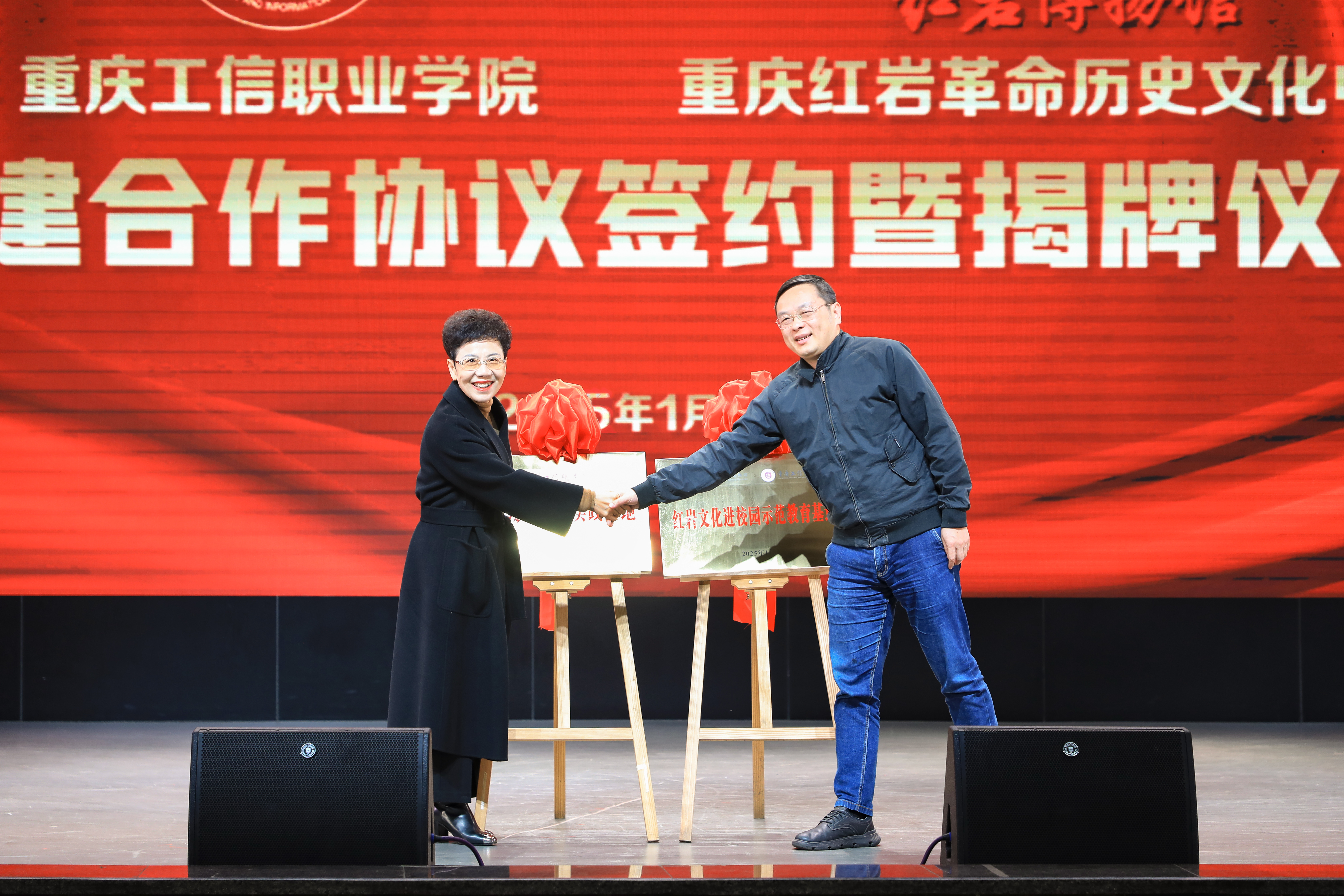 2025年1月16日上午,学校与重庆红岩革命历史文化中心共建合作协议签约暨揭牌仪式在渝中校区隆重举行,红岩革命历史文化中心党委委员、副主任黄振伟、红岩革命历史文化中心宣教处副处长罗雪、红岩革命文化中心六级职员蒲勤以及学校领导班子、全校教职工共同见证了这一历史时刻。仪式由团委负责人李卉卉主持。揭牌仪式上,学校党委副书记吴瑶发表了热情洋溢的致辞。吴书记在致辞中回顾了学校和红岩革命历史文化中心的深厚渊