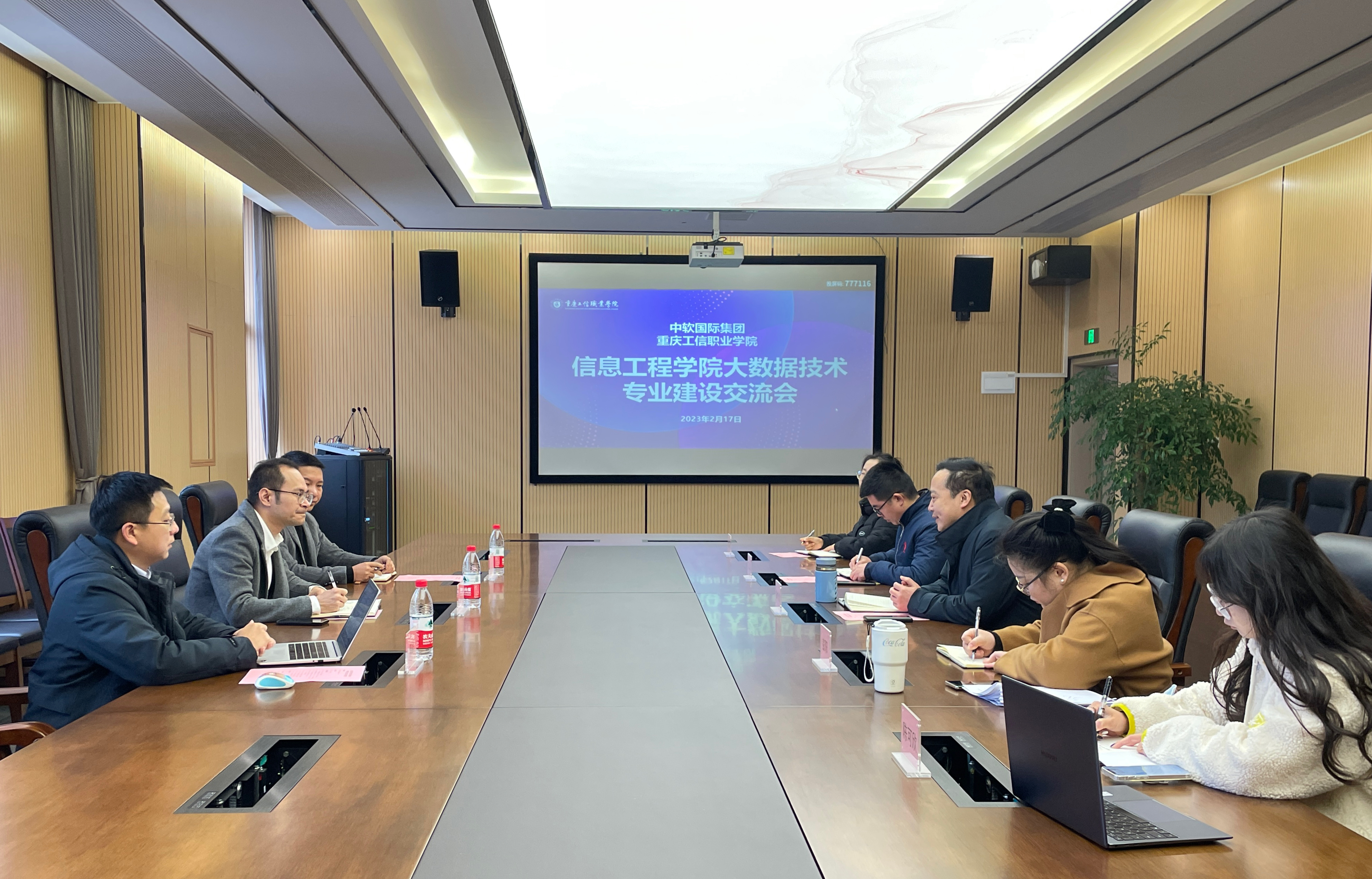 中软国际教育科技集团与重庆工信职业学院信息工程学院专业共建交流座谈会在学院立德楼会议室举行。中软国际教育科技集团西南区域总经理文斌、副总经理曾鹏、重庆区域校企合作经理谢磊,重庆工信职业学院副院长柴彬堂、教务处负责人万美春、信中软国际教育科技集团与重庆工信职业学院信息工程学院专业共建交流座谈会在学院立德楼会议室举行。中软国际教育科技集团西南区域总经理文斌、副总经理曾鹏、重庆区域校企合作经理谢磊,重