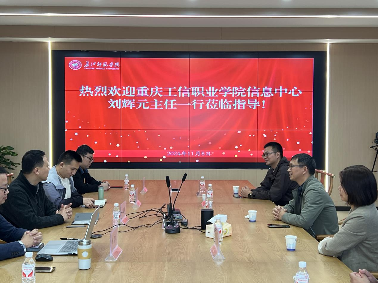 2024年11月8日,现代教育技术中心负责人刘辉元带队,前往长江师范学院调研该校信息化建设。长江师范学院信息中心谭海军主任对调研团到来表示了热烈欢迎,并简要介绍了长江师范学院的基本情况及近年来在信息化建设方面所取得的成就。调研过程中,双方重点围绕校园网建设和低代码开发平台的使用经历进行了深入交流。长师系统建设科林远华科长详细介绍了长师信息化建设的整体规划、实施步骤及成效,特别是在校园网建设、以及